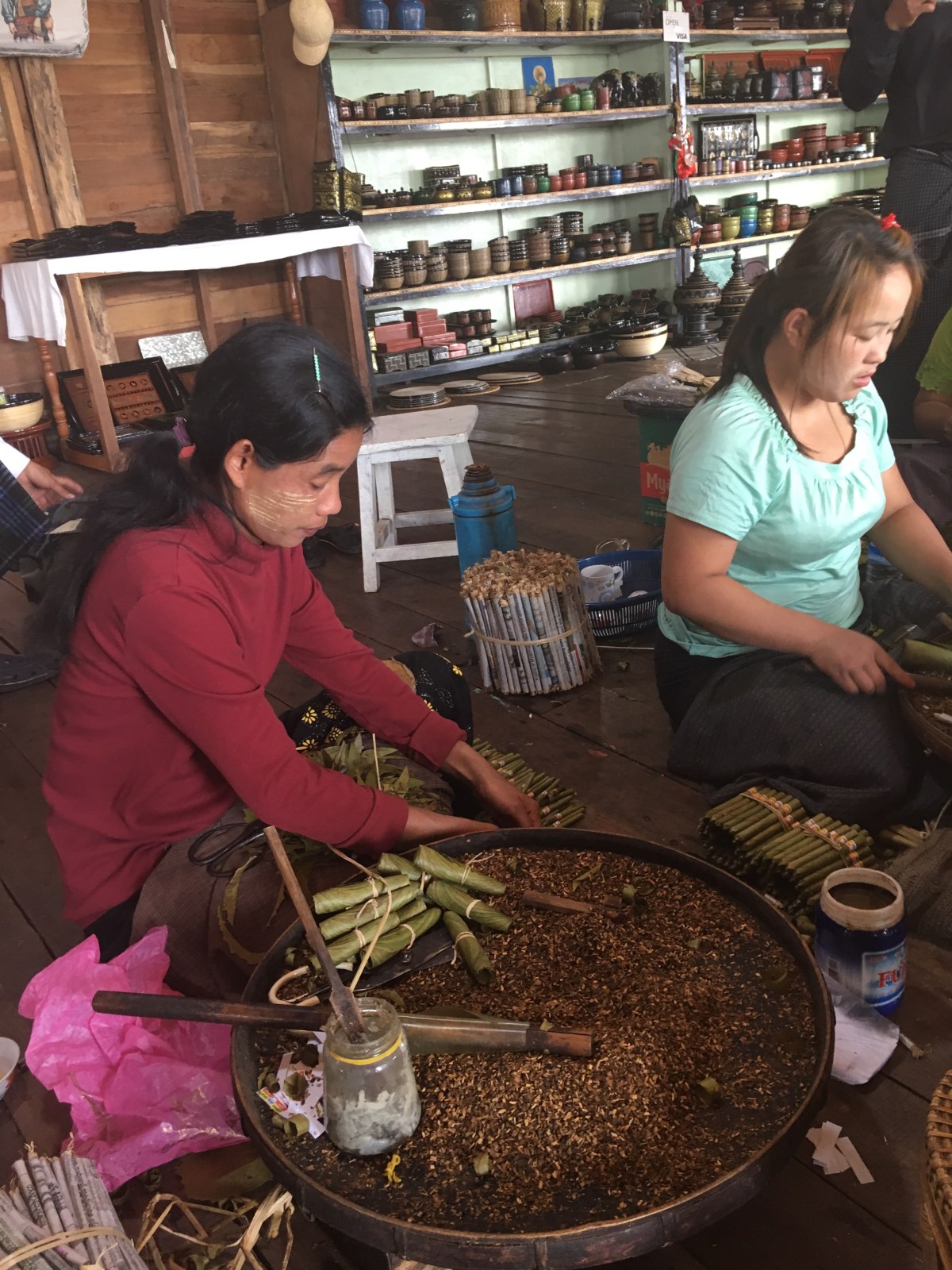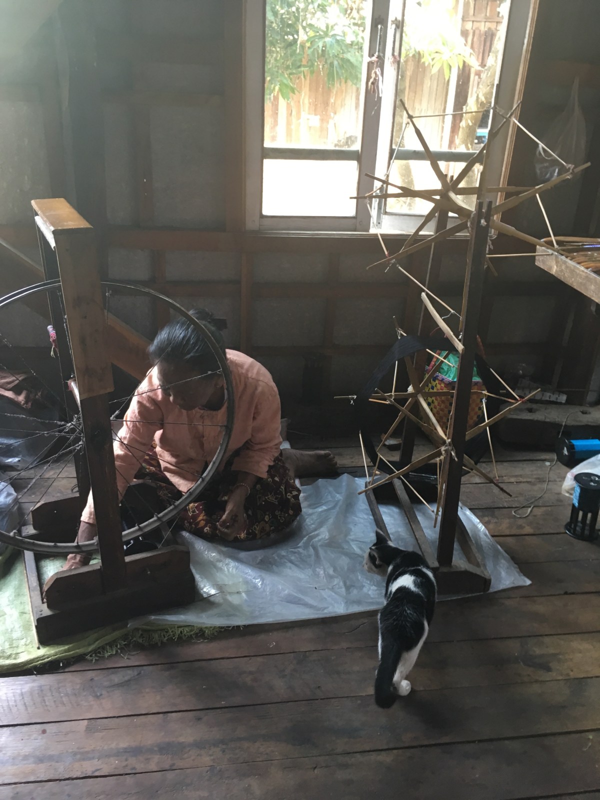 There are a lot of crafts to be had on Inle, including hand made silver jewellery and lacquered bamboo items (cups, bowls etc), as well as weaving by hand which was actually really interest. Tiny old ladies and one old man were perched on wooden benches turning thread from lotus flowers into beautiful designs. There goes my budget…