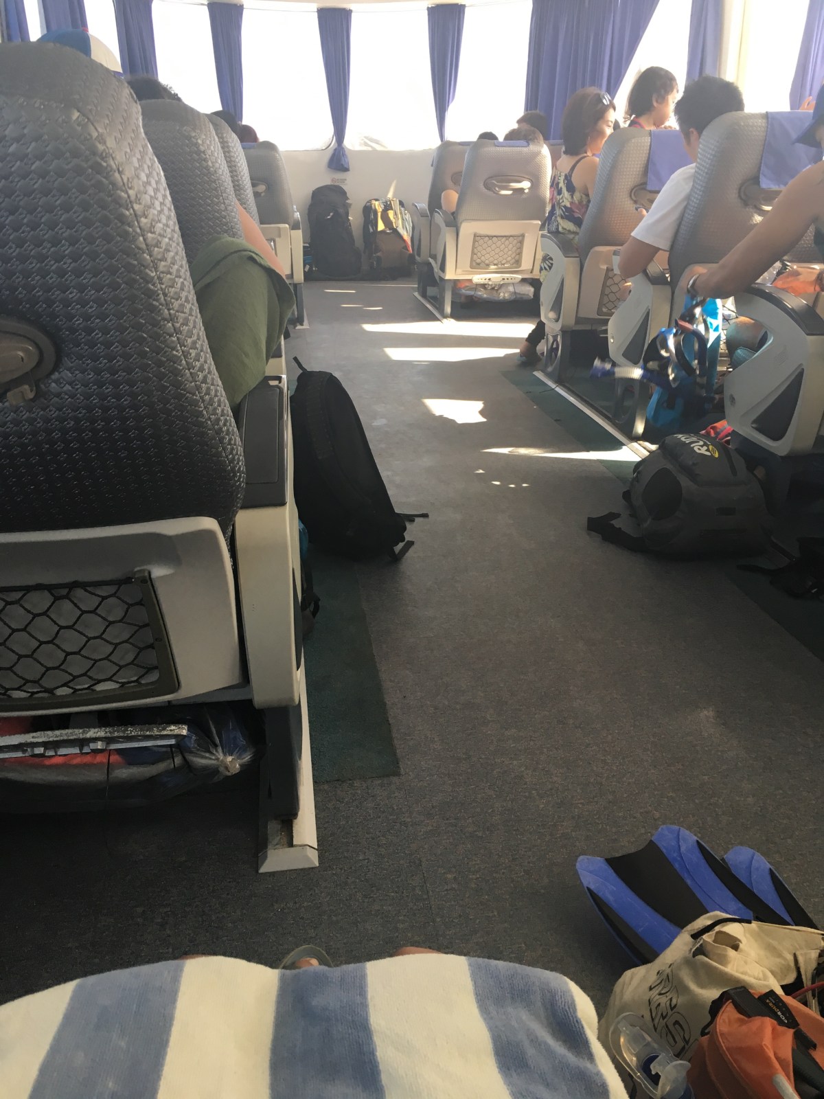 The fun didn’t stop there as the next day Alexander and I had signed up for a trip to the miniscule Apo Island, the most expensive outing so far at about Β£30 for the day. Only one company runs these trips, the most expensive resort on Siquijor, Coco Grove. It was also possibly the best day trip I’ve ever taken. Prepared for a rickety old row boat, we were amazed to board a huge luxury boat with comfy airplane style seats, towels and banana cake which won everyone over. We ran into Nathalia again and also picked up Amelia from England.