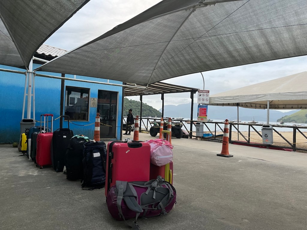 As we left Rio, to make the bus and boat journey to the island of Ilha Grande easier, we booked a three hour transfer from the hostel desk. Two hours later we were still in the minibus and just pulling up at the airport to collect the last passenger (the airport that is only half hour away to start with) courtesy of a very annoying family who were not even at their hotel at pickup time let alone ready to leave, then had the audacity to ask the driver to stop at a cash machine. When we finally got everybody on board the driver had have enough himself and declared we were stopping at a restaurant for 30 minutes. By the time we got to the port we had missed the boat plus we had noticed that everyone else paid on the bus and paid five pounds less than we had. The bus driver bought boat tickets for everyone, gave them to one girl to look after for all of us and instructed us to line our luggage up in the middle for some unknown reason. At least there was a police guard to protect the sitting ducks.