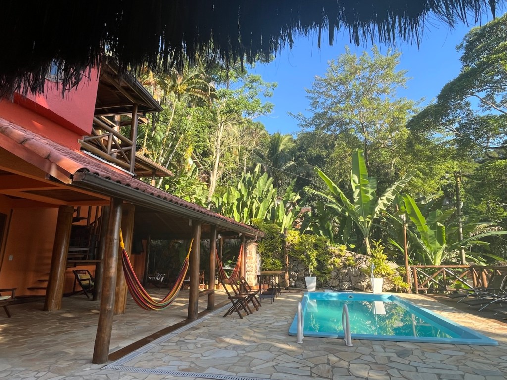In the morning we saw how beautiful our little guesthouse really was, with hammocks and a pool and a lovely breakfast lady squeezing fresh juice who spoke no English but used Google translate to talk to us. We were the only guests in the whole place so had our own private breakfast buffet of fruit and rolls and cake. After some planning the night before, we set off on the most popular hike across the island to Lopez Mendes, “the most beautiful beach in Brazil”, billed as it’s a tough 3 hour, 6.1km hike (“expert” level) with limited supplies on the way. We bought a picnic lunch of sandwiches (unfortunately they toasted them) and enough crisps and water to survive for a week.