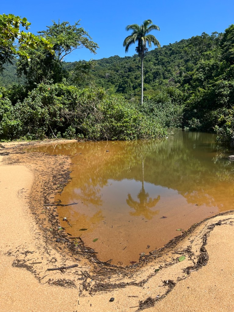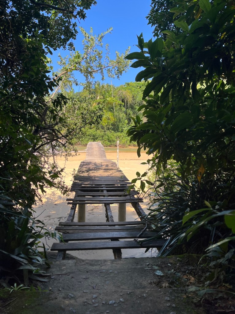 The trail passes by the smaller and in my opinion more beautiful beaches of Praia de Palmas which had just a handful of tiny guest houses and would have been a lovely place to spend a night, then continued to Prai de Mangues where the boats come in. We saw some gorgeous little monkeys in the trees, scared away by the Argentinian group with their flasks of maté and loud voices shouting “hay un mono!!”. Not any more there isn’t.