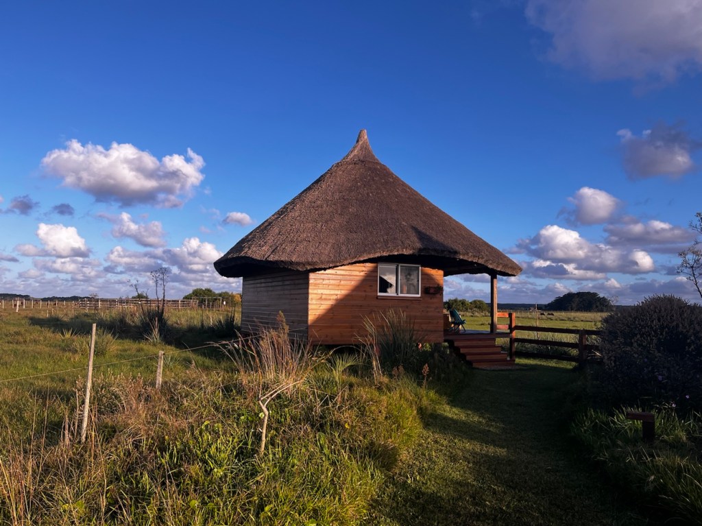 After leaving Cabo Polonio on the jeep in the rain, we arrived back at the visitors centre. Our next stop was only a 15 minute drive north so with the next bus not for a couple of hours we took a taxi to Los Chajá ecolodge, on the edge of the small beachside down of Barra de Valizas. This place was recommended to me by another lodge that I wanted to go to (vegetarian, horses, specified they were “not a dude ranch”) but was closed at the moment. We fell in love with the place as soon as we got there – we had a beautiful thatched roof chalet all to ourselves, one of only two on the property and directly surrounded by twenty horses munching on the marshland.