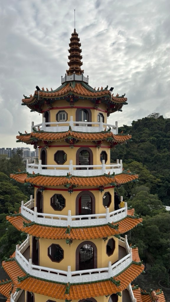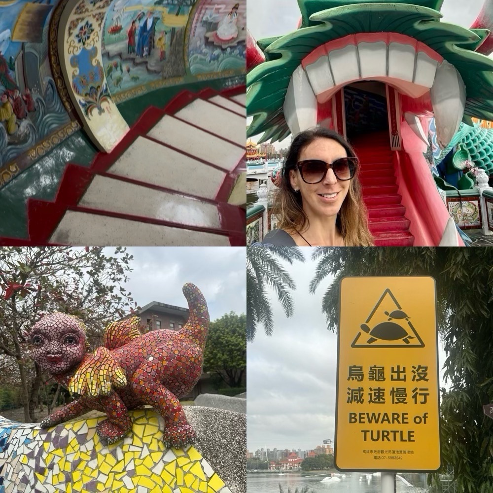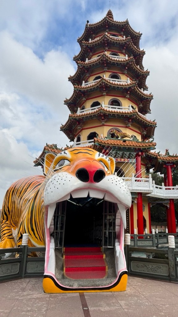 Moving clockwise around Taiwan, the next stop was the city of Khaosiung in the South West of the island – an over the top mix of old and new with a good amount of nature thrown in. Khaosiung has it all and I loved it immediately. The “mountain line” train journey from Taitung was also beautiful as it hugs the coast then cuts across inland. The only thing I didn’t like was my choice of budget accommodation which was my own fault – you get what you pay for and £10 a night got me a pod style bed in a dark basement of a building, with a slightly creepy giant teddy bear sitting in the windowless lounge area that nobody used. The lack of windows meant I got dressed for a summery day only to go upstairs to find it pouring down with rain.