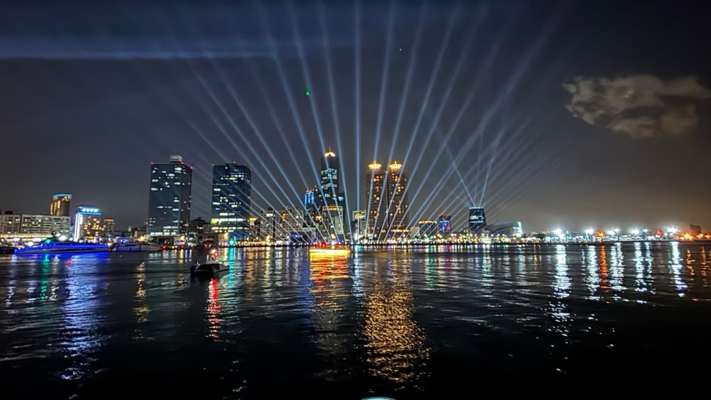 As I walked along the harbour, I came across the massive stadium beaming lights up into the night sky. I wasn’t sure what it was at first but asked a very young student who had stopped me to tell me I was cute (when I politely said he didn’t need to accompany me he graciously said that’s fine we can just be friends).