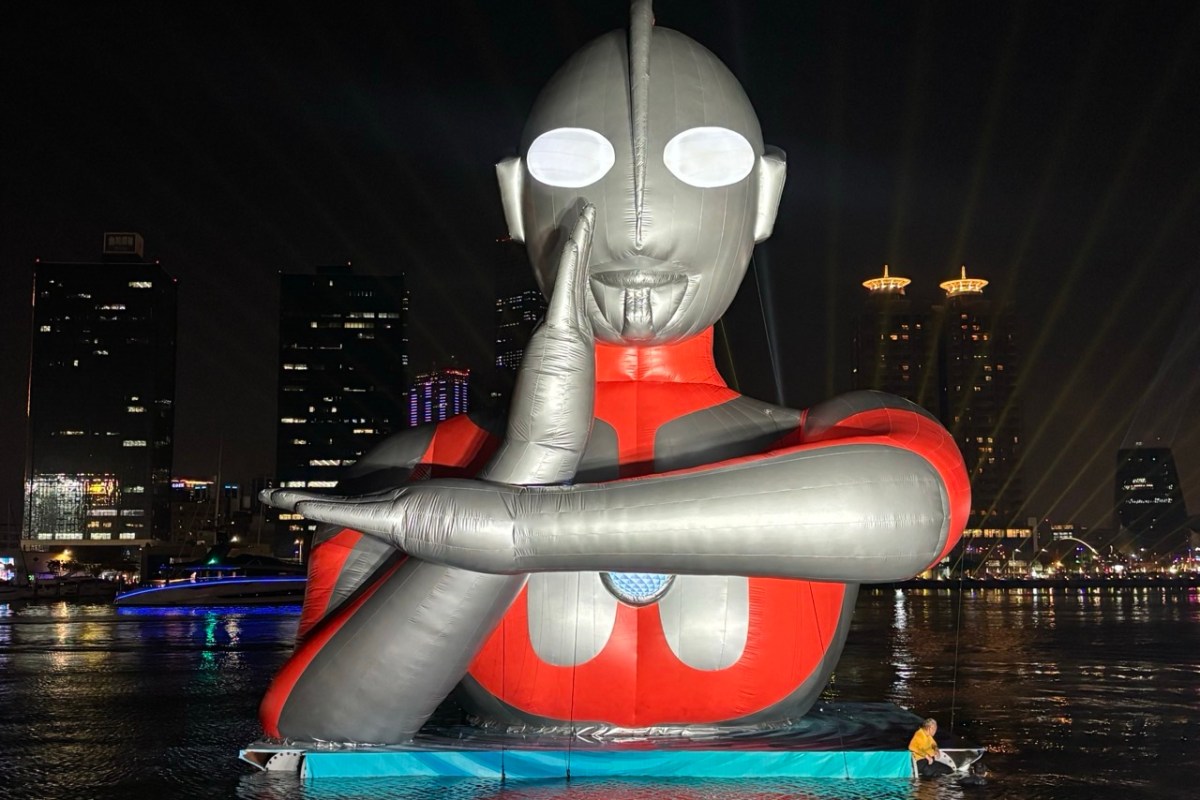 Things get more modern and more weird the further around the harbour you go. An absolutely massive floating alien like creature awaits. What I didn’t understand was why there was a real life man sitting on the alien and another in the water. Some official looking people were shouting instructions from the harbour, so they weren’t there by mistake. I Googled it later and found out it was not in fact an alien but a giant inflatable “Ultraman” statue floating in Love River Bay. Ultraman being a Japanese superhero character.