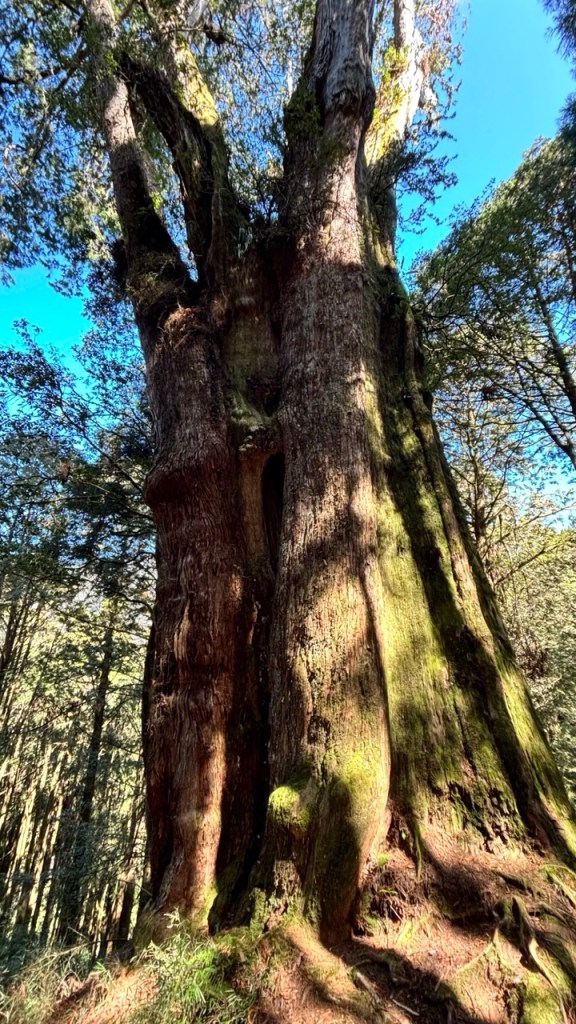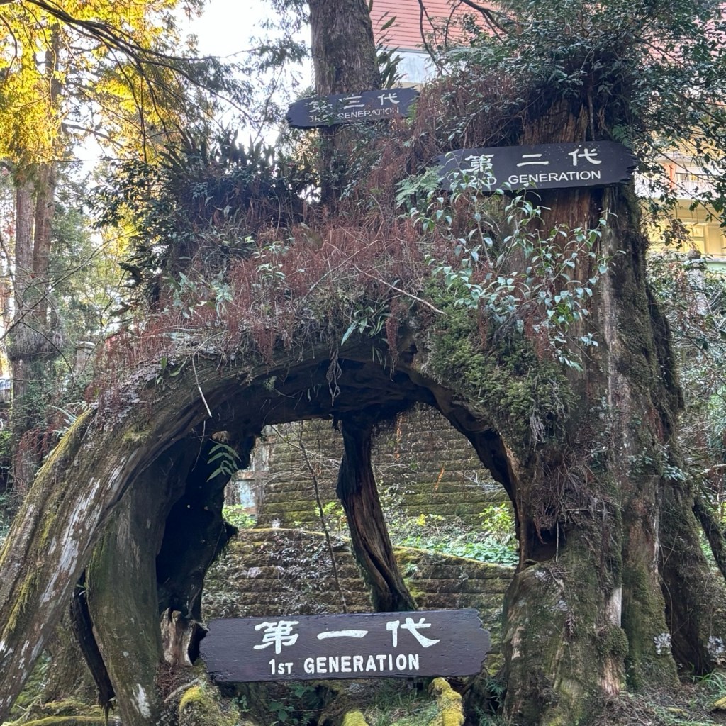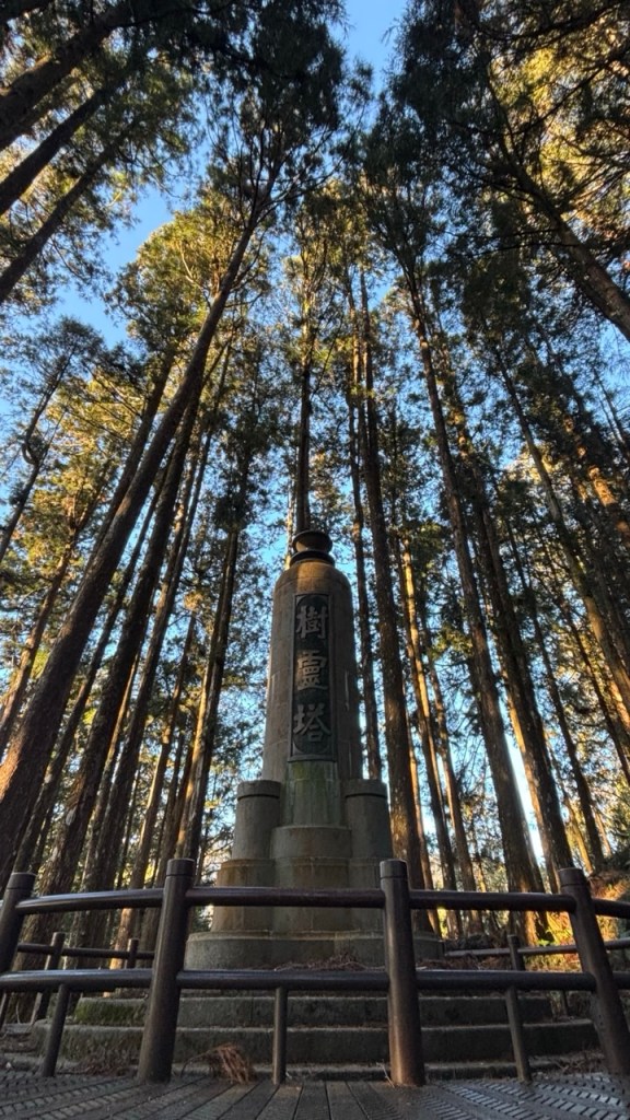 In other facts about Alishan, the Ginkgo tree is considered a living fossil, thought to originate at least 270 million years ago. Its cell-regeneration means that old and young trees remain equally healthy and produce the same fruit, they are also resistant to drought and disease making them close to immortal. One of my favourite trails was the Giant Trees boardwalk which connects 36 ancient, giant Formosan red cypress trees, over 1000 years old. The “number 28 giant tree” is the tallest and oldest tree on the Giant Tree trail. It has a girth of 13.1 meters and is 43.5 meters tall, estimated to be around 1,095 years old. Again it was impossible to capture the size of this on camera. We also have the Sacred Tree (Shenmu) – this 3,000-year-old tree collapsed in 1997 but it’s remnants are preserved near Shenmu Station. And the oldest standing tree, the Shuishan Giant Tree over 2700 years old. There are so many Giant Trees it gets a bit confusing.