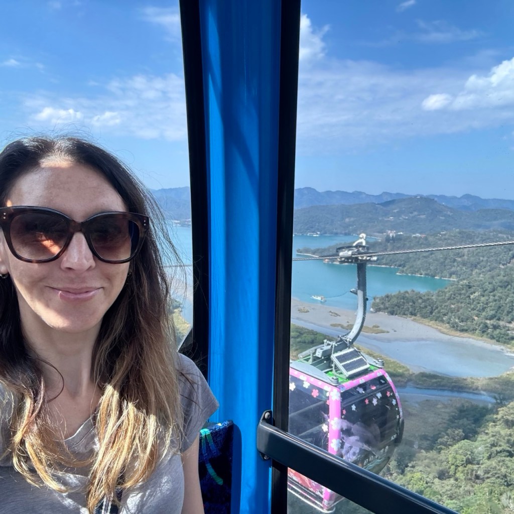 If there is a cable car then I have to take it. The “Sun Moon Lake Ropeway” goes up to the Observation Tower of the Formosan Aboriginal Culture Village. It took solo travel to another level – not only was I allocated my own gondola but I was asked to choose which one I wanted. I chose the one with pink cherry blossom as this was clearly the one the attendant wanted me to pick.