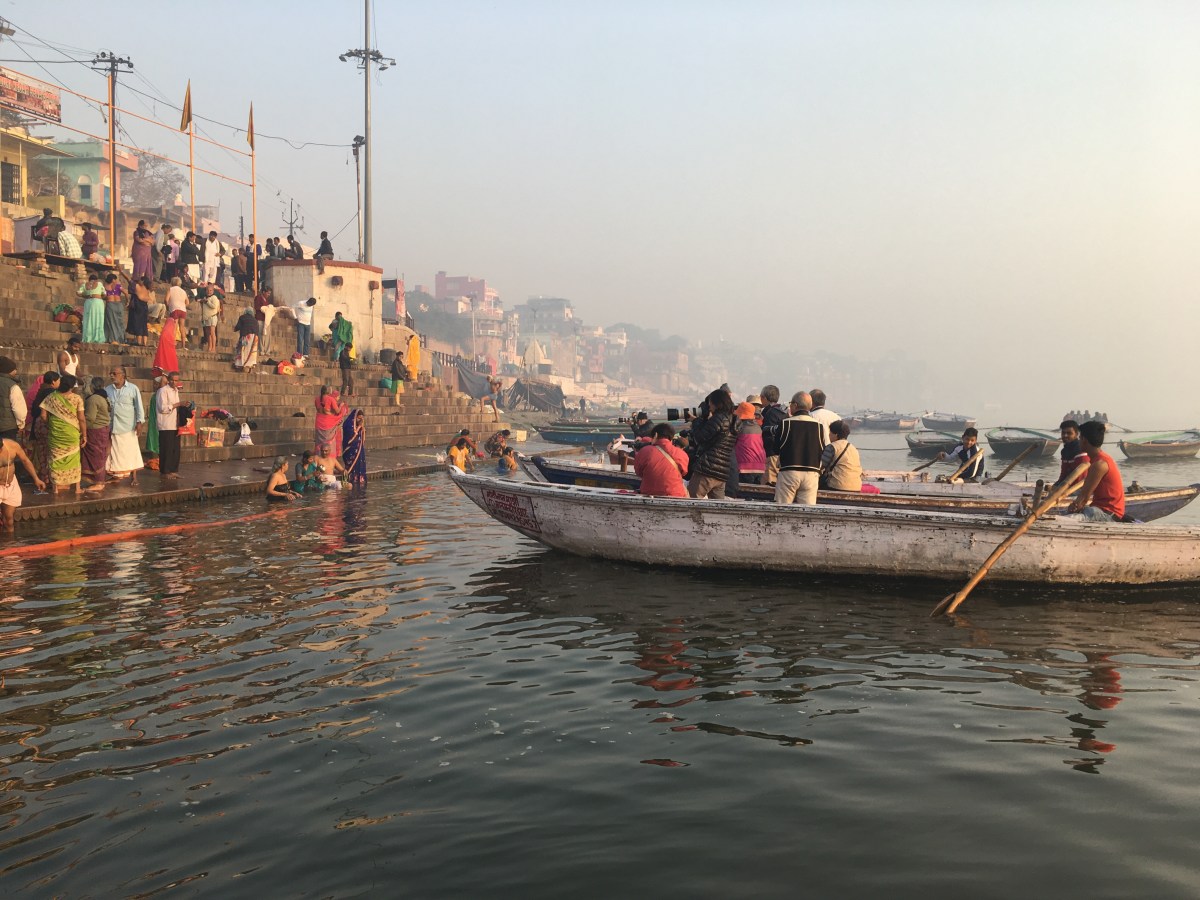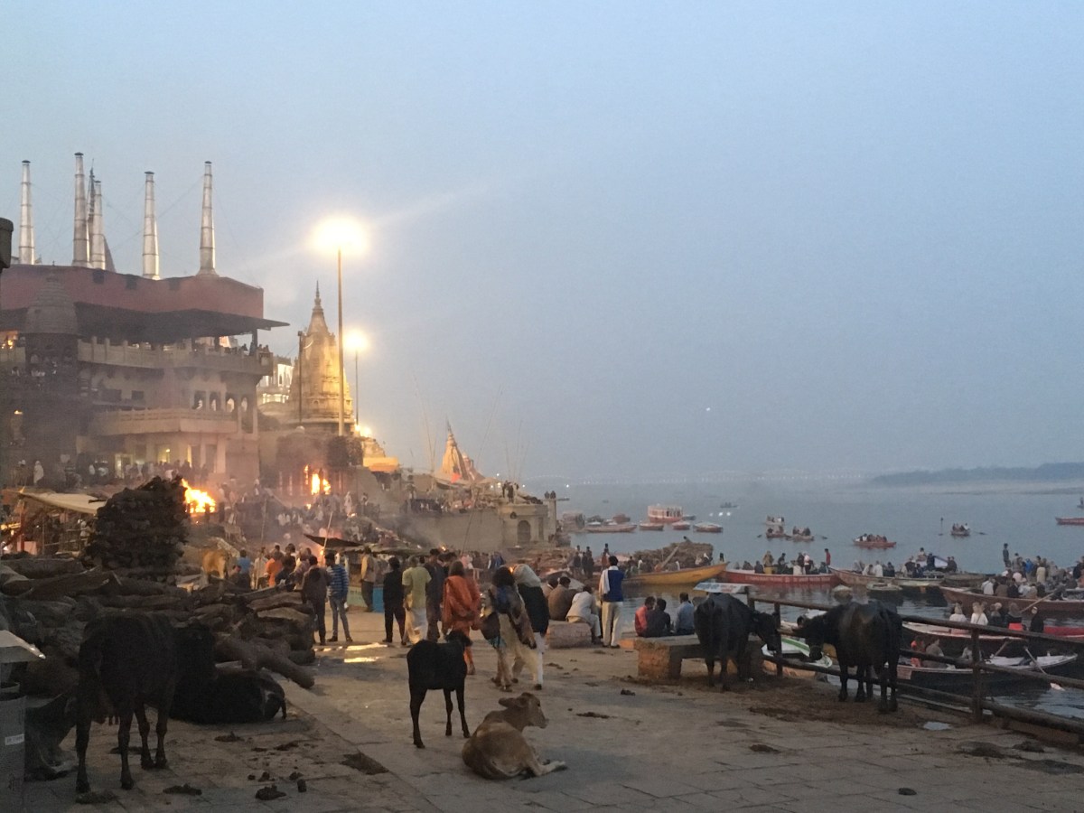I’m standing on the banks of the river Ganges alongside my fellow students, arms outstretched, looking up into the clear night sky and shouting at the top of my voice ‘Mamma Mia!! Thank you Universe!!’. Bemused diners at the nearby restaurant are looking and people are coming out onto their balconies to see who the nutters are. My first thought is that I won’t be able to come back here for a coffee tomorrow! (Not that I can afford it anyway – I have 3 rupees in my purse until unless I find that elusive ATM).)