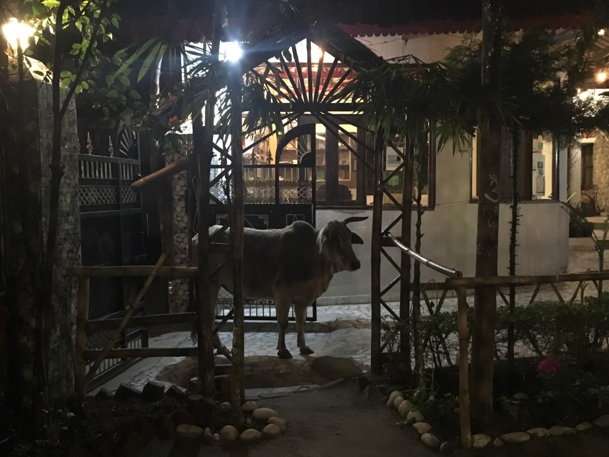 At the end of the week everyone was talking about the guru Mooji being in town. Mooji is actually from Brixton/Jamaica, but has an Ashram here. I was intrigued so a group of us headed off one morning (skipping meditation class π) to see what all the fuss was about. I was, perhaps wrongly, expecting to hear Mooji’s words of wisdom. We arrived at a huge, modern structure, manned by seemingly hundreds of devotees, silently directing us through airport style security, requesting that we take off our shoes and sit cross legged on the floor. I say silently, because they did not speak a word – they held up signs and pointed instead. It struck me that they were all white, mostly blonde, wearing white robes and with the same brainwashed look in their eyes. The boy closest to me holding the ‘move closer together please’ sign looked like he might actually massacre all of us. We sat wondering what was going on whilst a calm voice delivered some philosophical thoughts over the loud speakers. No sign of Mooji yet. An American woman got on stage and told us The Rules – phones switched off, don’t pet the cows, donations welcome by credit card… and the person who had blocked the road with their car was in a lot of trouble. Later we stood in anticipation of Mooji’s entrance. About an hour after we had arrived, he appeared and sat serenely on the stage, smiling quietly for a while. The place was packed out by now, the vast majority being white people. Eventually he spoke, thanking us for coming and explaining that it’s OK if we don’t understand everything today – that’s good, because I hadn’t understood a word so far. Just when I settled down to listen, he invited questions from the audience (but no questions from those new to his teachings please). A Middle Aged American woman, blonde and wearing white, took the mic, and proceeded to profess her undying love for Mooji and gaze at him with adoration for several minutes before announcing she had suddenly understood everything, and was, in fact, ‘nothing’. They talked for a while about what it means to be nothing, and if this is actually the same as being ‘everything’. As I was thinking we might not get out here alive, a second Middle Aged American woman took the mic and burst into tears of joy. Without wanting to be disrespectful of their experience, this was not what I had come for and I wanted to get back for my massage! Luckily one of my fellow Ashram inmates felt the same and after raising incredulous eyebrows at each other we made a run for it, out the auditorium, past the zombie guides, grabbed our shoes and jumped straight into a waiting tuk tuk, paying probably double to get out of there (well he paid as I still didn’t have any money!) I wasn’t quite sure what I had just witnessed – I would still like to check out Mooji’s teachings some time to see what he is actually all about. He certainly had an air of calm about him. But without the adoring ladies.
