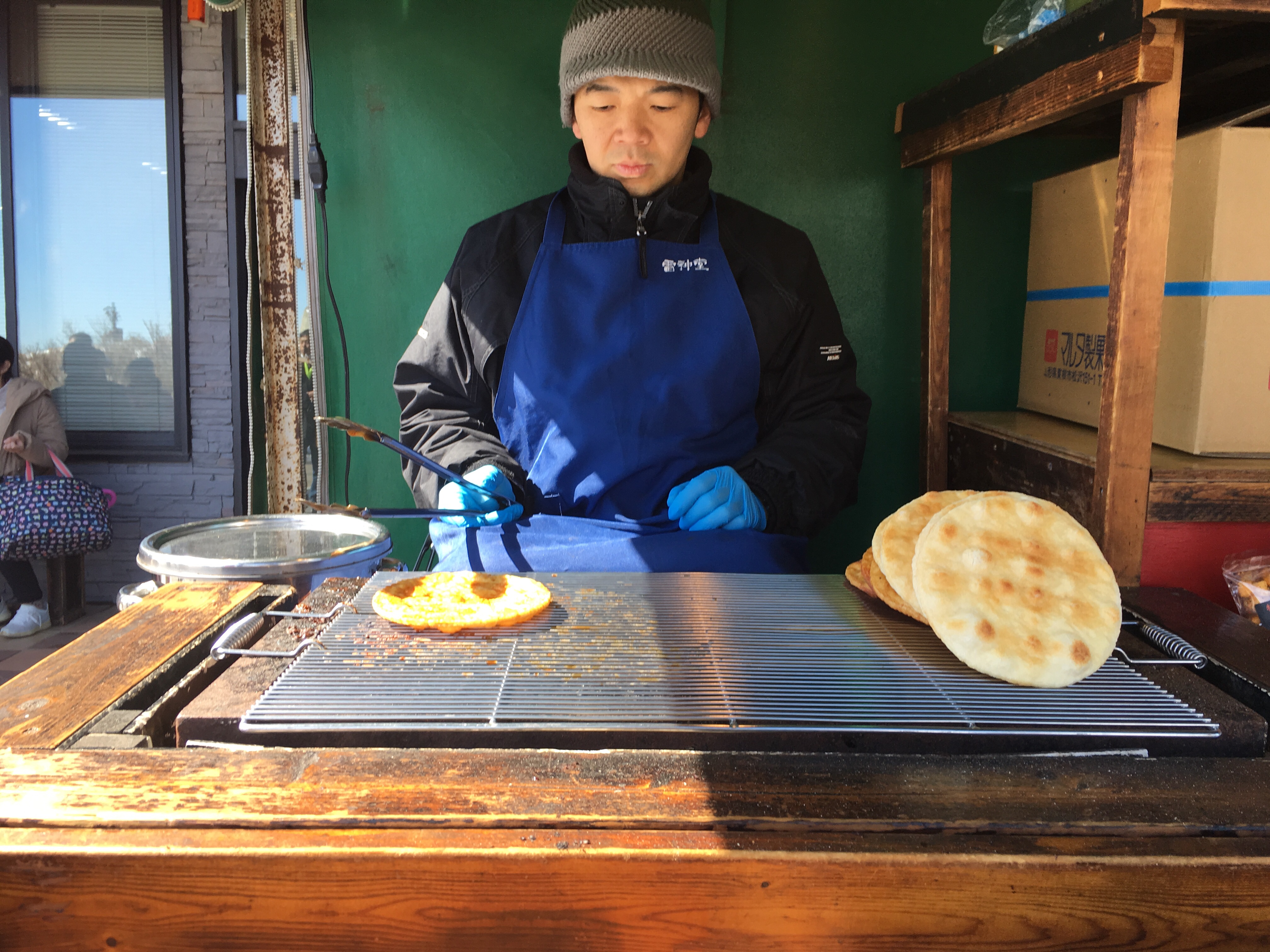 I tried a giant freshly roasted rice cracker with soy sauce while the guys went for the local ‘black egg’ 🤢 I guess it’s black due to the sulphur from the hot springs which we could smell – obviously ignoring the warnings stating that anyone with any health problems at all risks death (flashback to the volcano in Hawaii which Helen and I survived). I didn’t see anyone bothering with the protective face towel that was provided 🤷🏻♀️