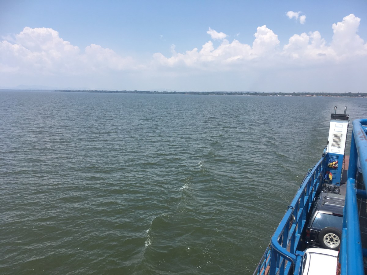 The chicken bus arrived, the same American school bus as the other countries but playing reggae instead of salsa music. I didn’t get a good look at the the capital but it seemed pretty laid back, a different style to the more recent countries. The journey was complete sitting up front with the driver on the hour long ferry, after the traditional meal of Fry Jacks – fried dough stuffed with refried beans.