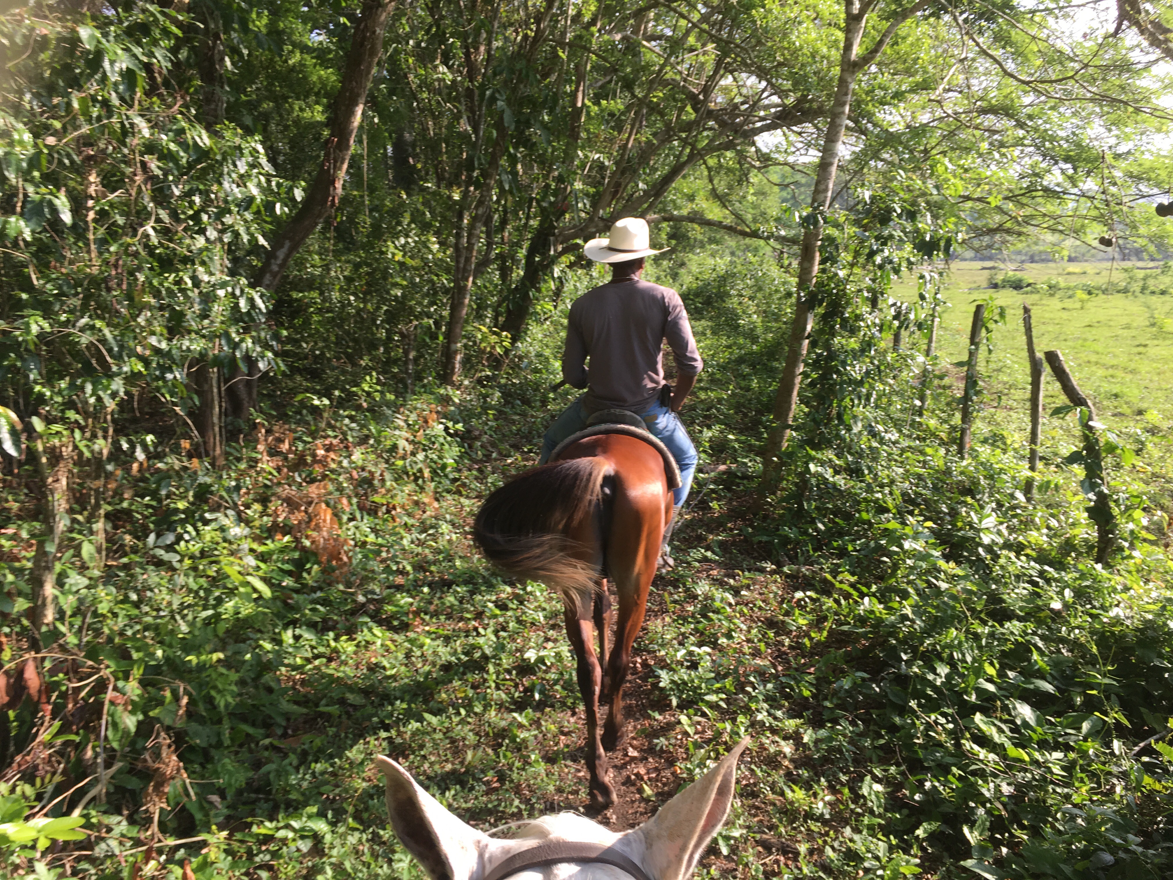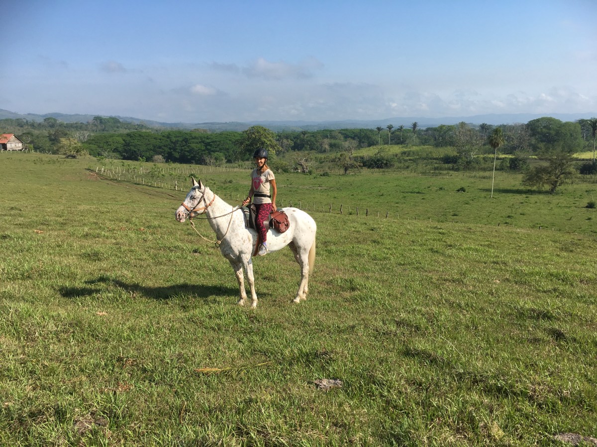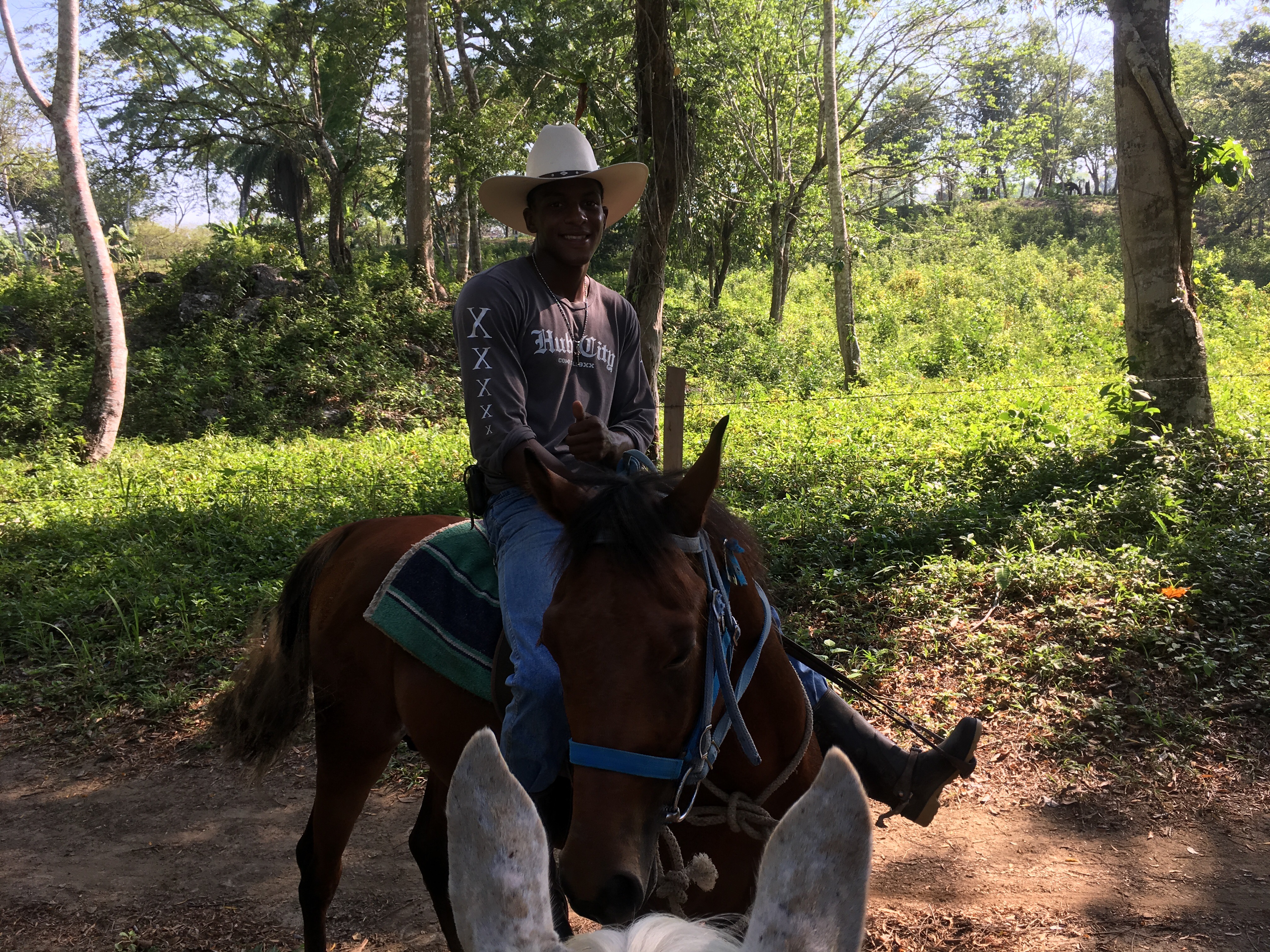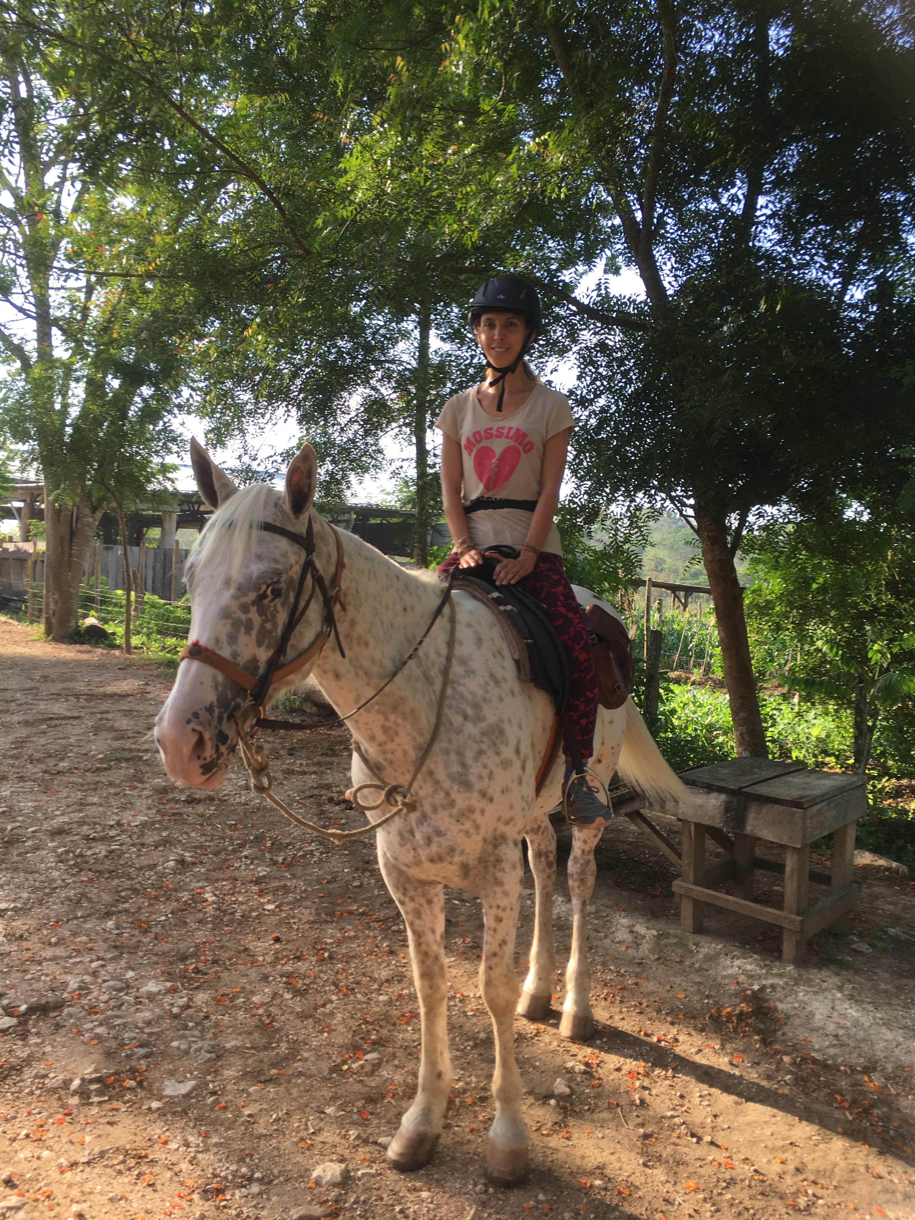 Hanna, a purebred Appaloosa mountain that I had to climb up stairs in order to mount. And she was the nicest horse I’d ever ridden. Cowboy Devon educated me on the cowboy scene is around here – they go to Guatemala to compete in races and ride bulls, and occasionally get in fights 😂