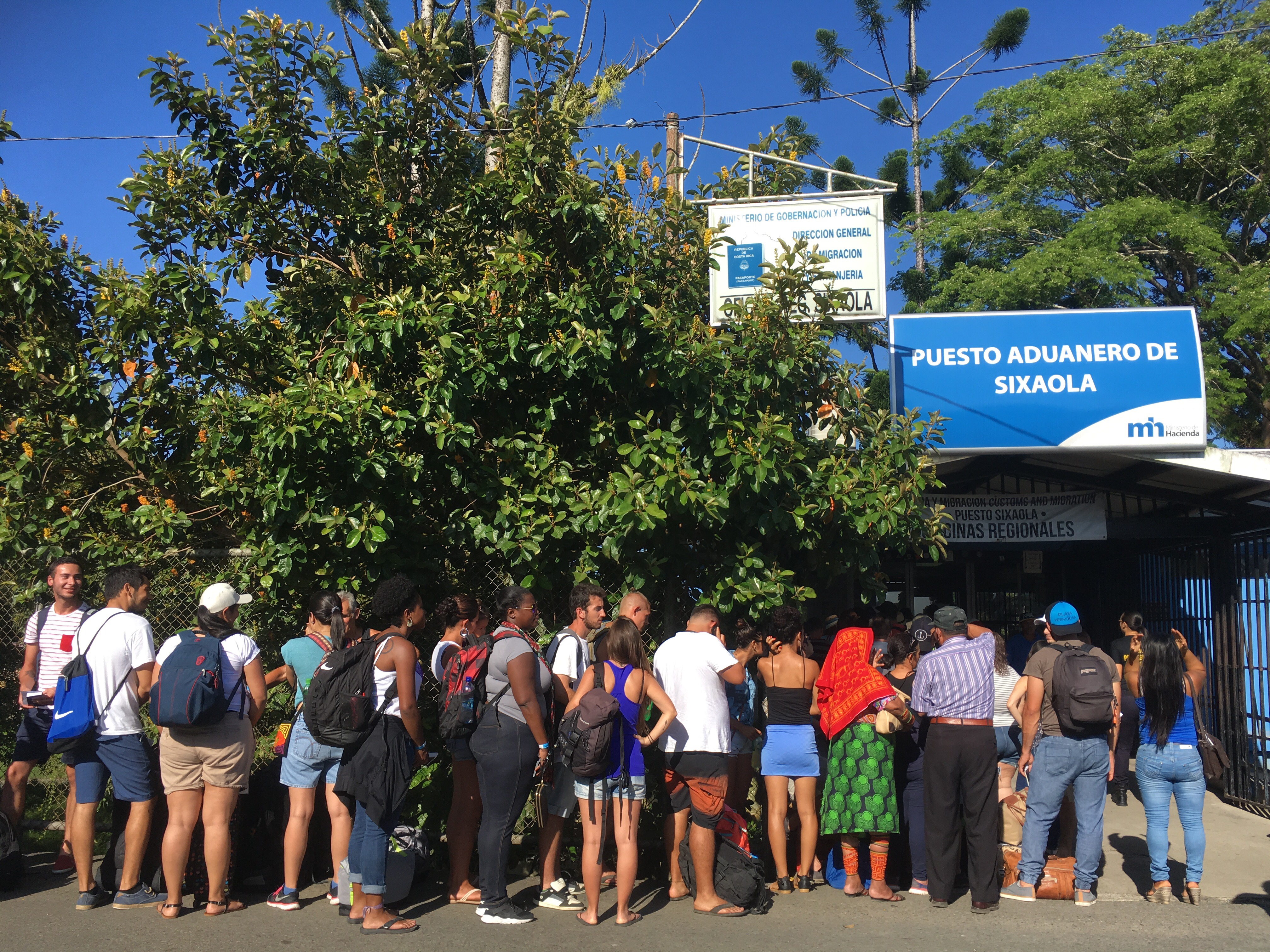 We left Puerto Viajo on a shuttle bus at 6am and still spent almost 2 hours at the border. Queuing to pay our exit tax, queuing to get our exit stamp and then the fun part, walking over the no man’s land bridge with our luggage to cross into Panama.