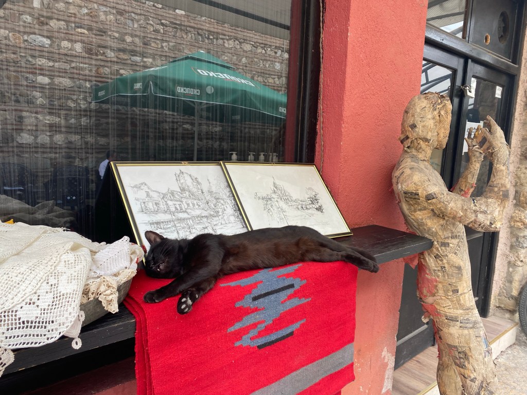 When I saw North Macedonia next door to Serbia on the map I knew I had to go there. When else was I going to visit?! A glutton for punishment, I booked a 7 hour bus from Belgrade to Macedonia’s capital city of Skopje (pronounced Skopia), prepared for an uncomfortable ride and long delays. When a huge coach pulled up on time, the driver had an envelope with my name on containing my printed ticket and I found wifi, reclining seats and only a handful of other passengers I wasn’t sure I was even on the right bus. We made a stop for coffee and I enjoyed the mountain scenery, and a smooth border crossing where the customs officer was too busy on a video call to take much notice.