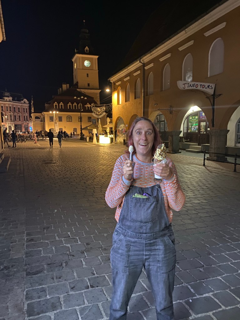 Back in Brasov and tired out, we couldn’t face the rigmarole of politely asking for a table for two, showing our vaccine passes, pretending to be surprised when it inevitably throws an error and hearing ‘its not OK!!’ yet again so we tried the traditional Chimney Cake from a street stand instead. My savoury version with avocado was far better than the ‘veggie burger’ I had the day before where the main ingredient of the veggie burger was missing, the actual veggie burger.