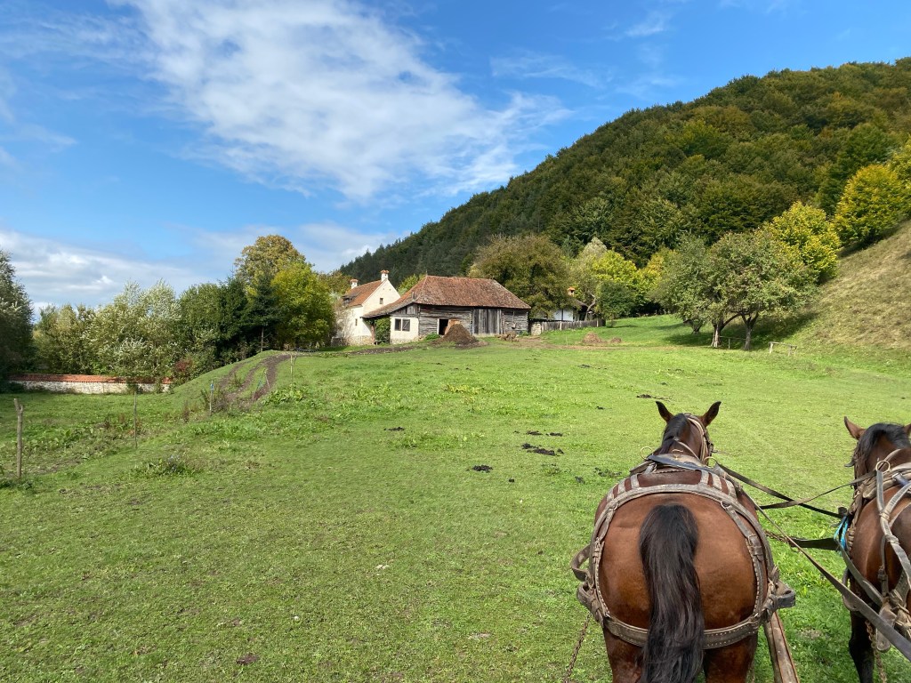 Our little cottage was very picturesque, the only noise being distant cowbells and red squirrels chomping on nuts up in the tree outside our door. We were again greeted with a glass of Palinka by a housekeeper otherwise known as ‘The Cook Lady’ and a large cartoon character of a man with missing front teeth otherwise known as ‘Mr Circular Saw’, neither of whom spoke more than a few words of English. Mr Circular Saw gained his name as soon after arriving I realised I had locked the key to my bag inside my bag and could no longer open the padlock, which he cheerfully sawed through with no trouble (Wish I’d filmed this but I was slightly terrified as sparks flew… Of all the places for this to happen, this was the most fortuitous – we wouldn’t have found a Mr Circular Saw in Bucharest! Also, I can’t believe Marianne hadn’t made this error sooner… OTC Helen).
