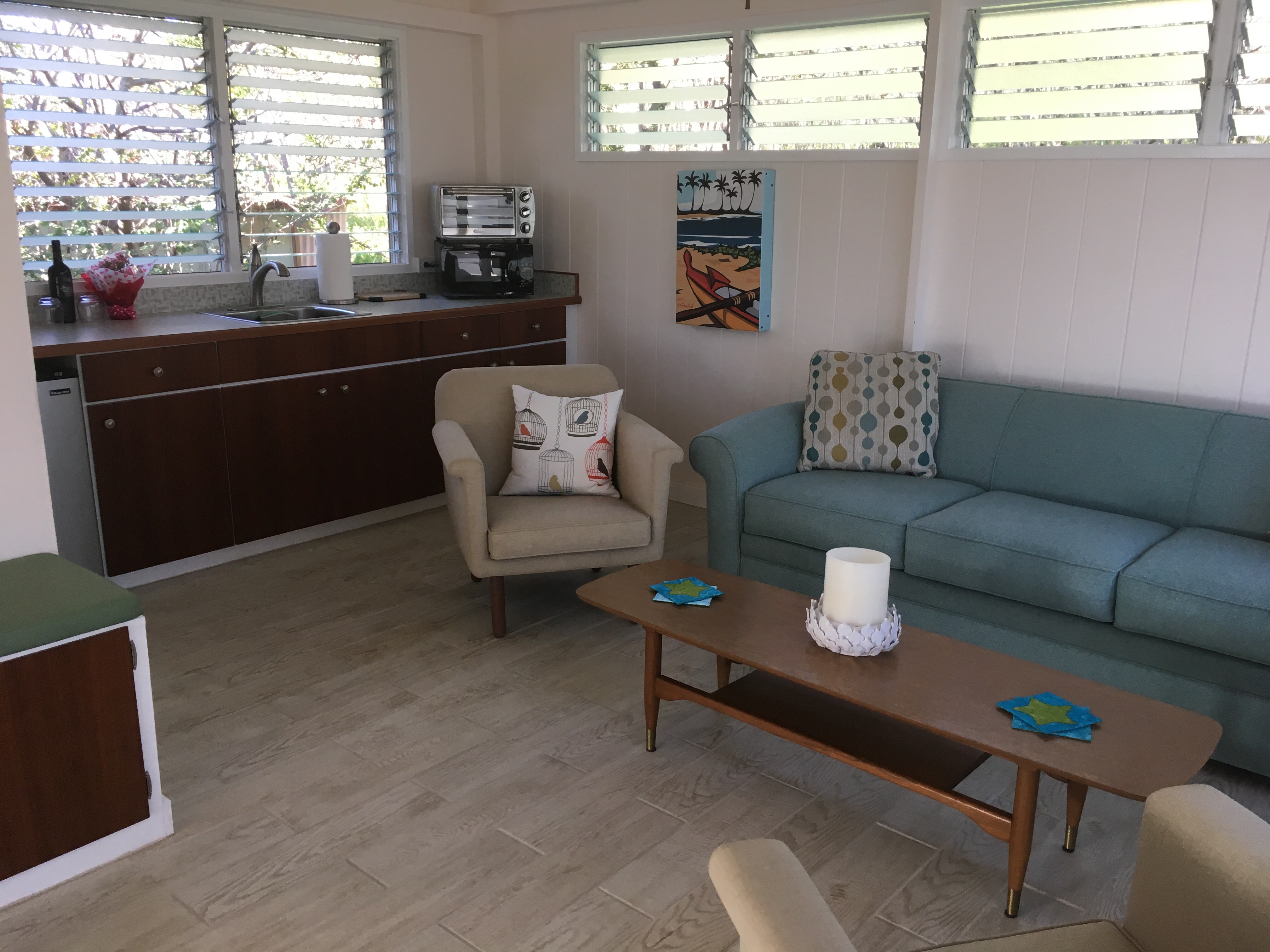 Kona has a totally different feel to Maui’s Kihei – the strip malls have been replaced with beachfront restaurants. We found our next Air BnB without getting lost and couldn’t believe our luck. We have a granny annix to ourselves next to Toni and Dave’s house, complete with swimming pool and framed by palm trees. Fresh flowers, coffee machine, Nutribullet and a bottle of wine are waiting for us and we wake up in awe that we are not in a Junkyard and we don’t need to go outside to the toilet.