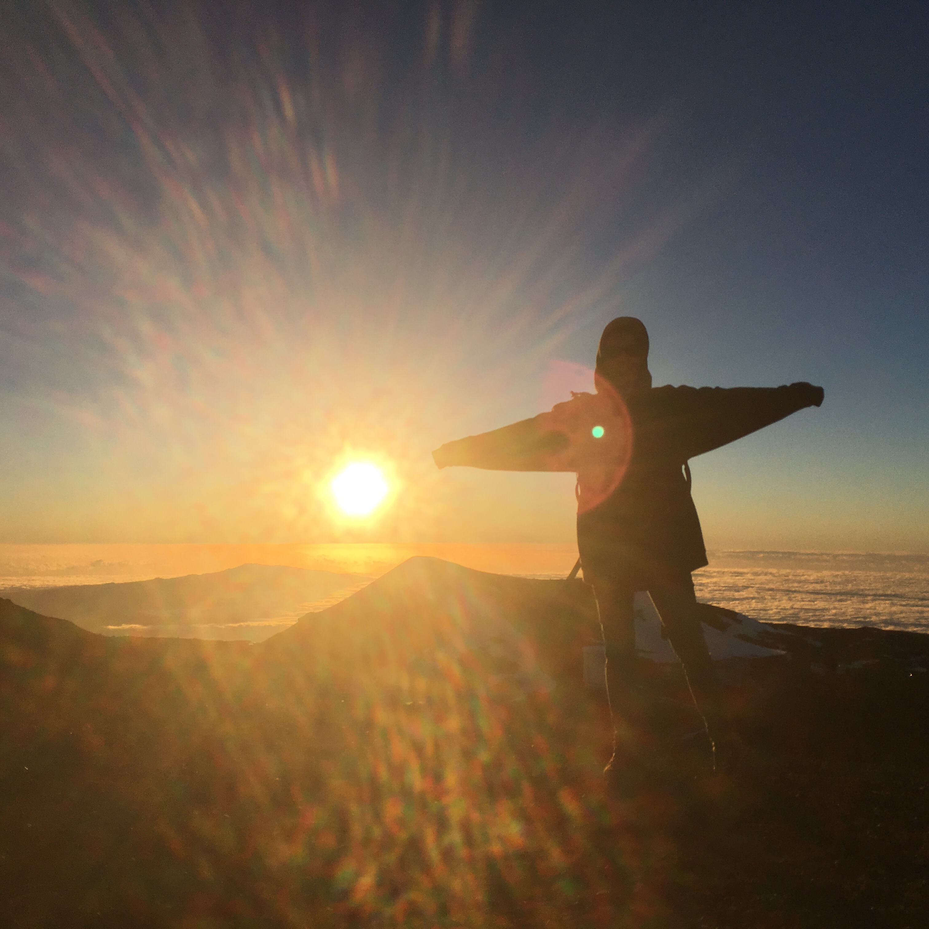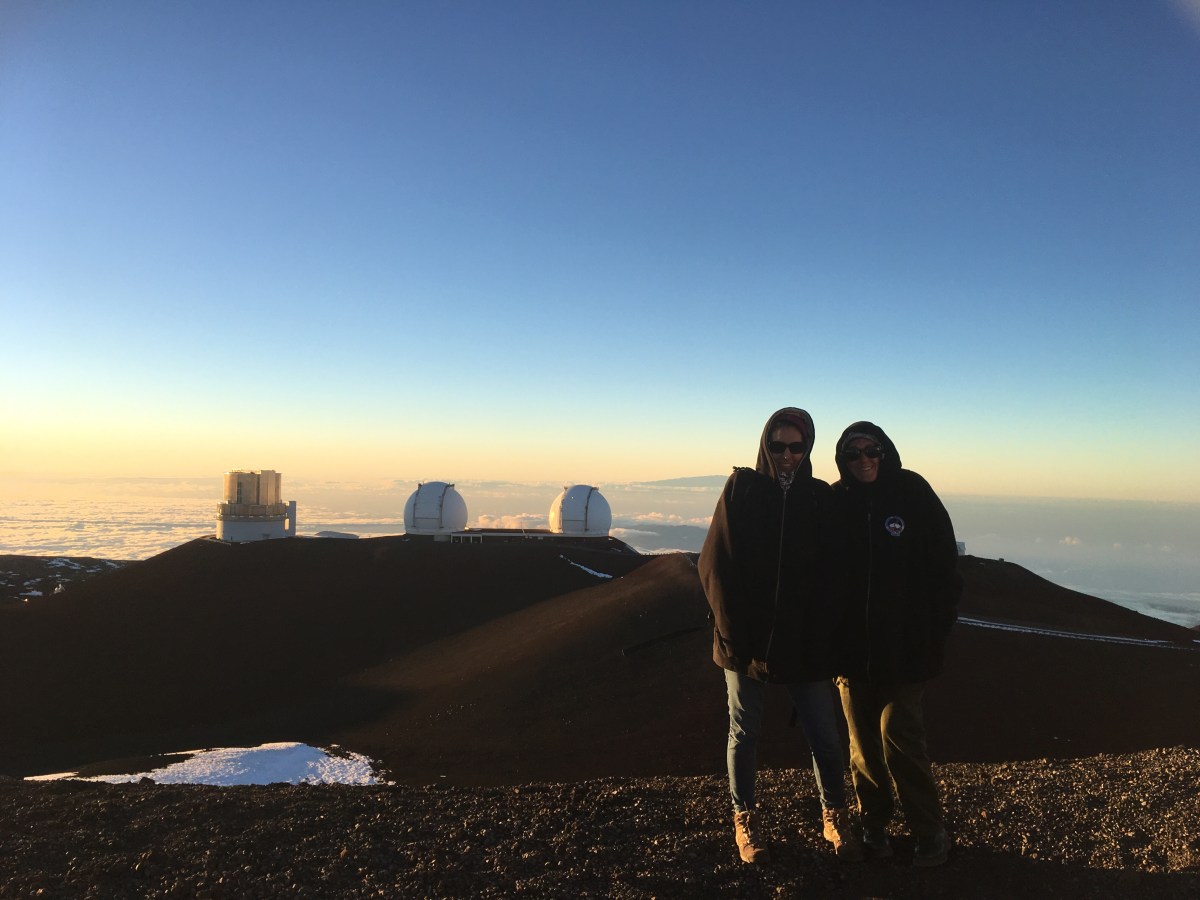 The chatty Daisy picked up us and some po faced Middle Aged Americans (the first mean ones we’ve met) and drove us in a 4×4 up to the snow capped summit. We put on all our layers and provided huge fleeces and it was still freezing! The view is spectacular- there are several huge telescopes up here and it’s where they simulated the Mars rover. Literally above the clouds, we could feel the 11,000 feet altitude (obviously we should be dead by now according to the health warnings). After sunset there was a stargazing talk and telescopes ready to view Venus, Mars, the Andromeda Galaxy and the Orion Nebulae. Amazing!